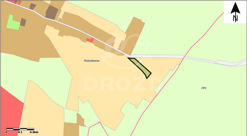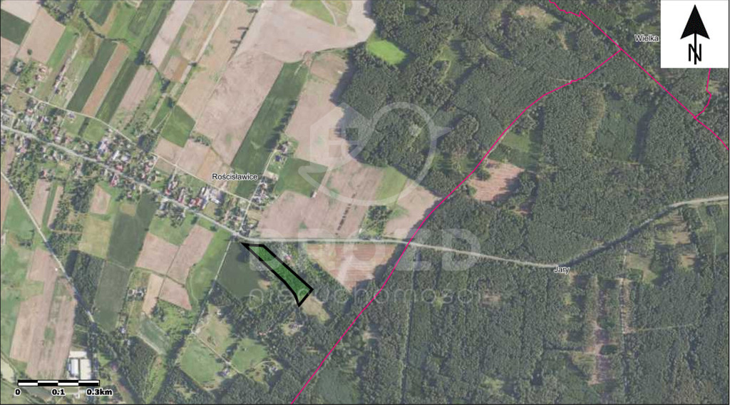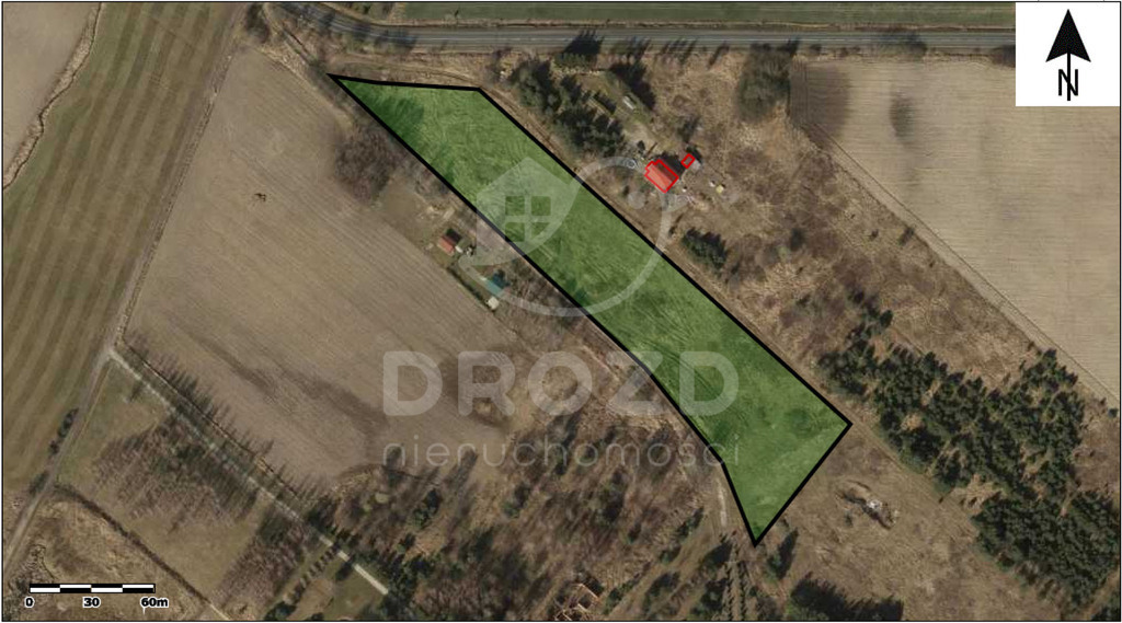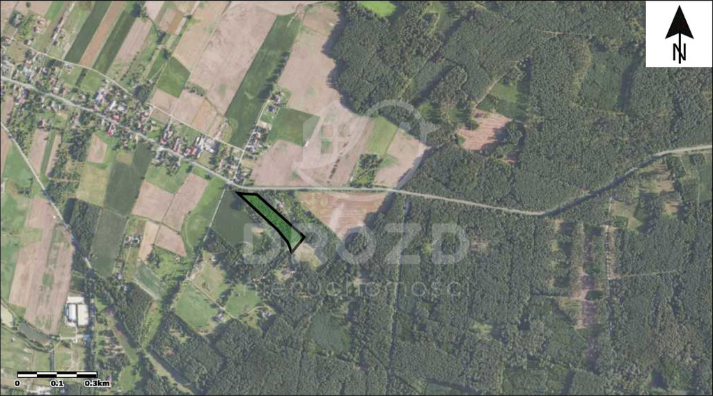 • działka położona na wschodnim skraju wsi, bliżej Obornik Śląskich, w pobliżu lasu, z luźną zabudową mieszkalną