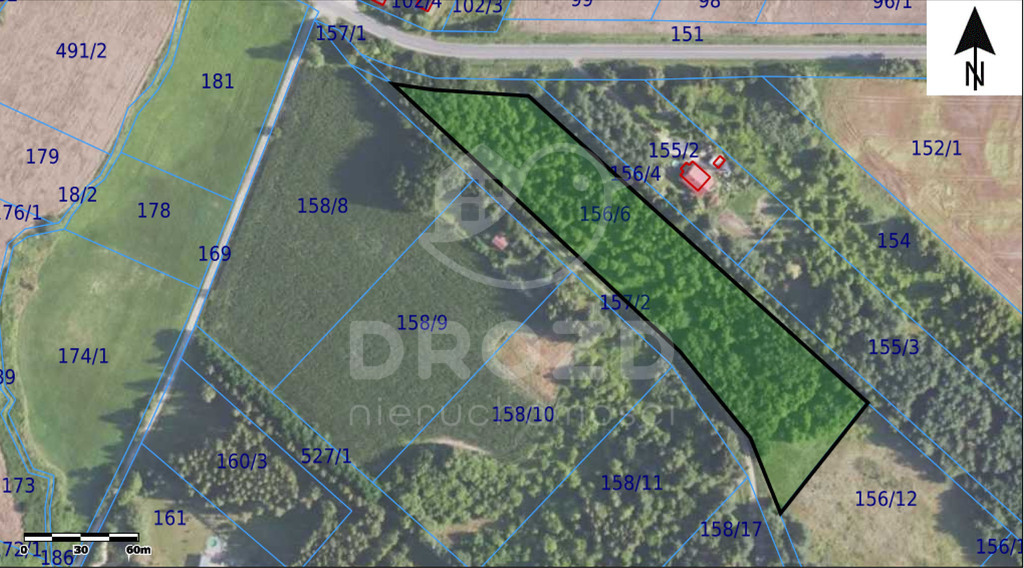 • dostęp z drogi publicznej poprzez drogę prywatną (156/4), do której jest ustanowiona nieodpłatna i nieograniczona czasowo służebność
