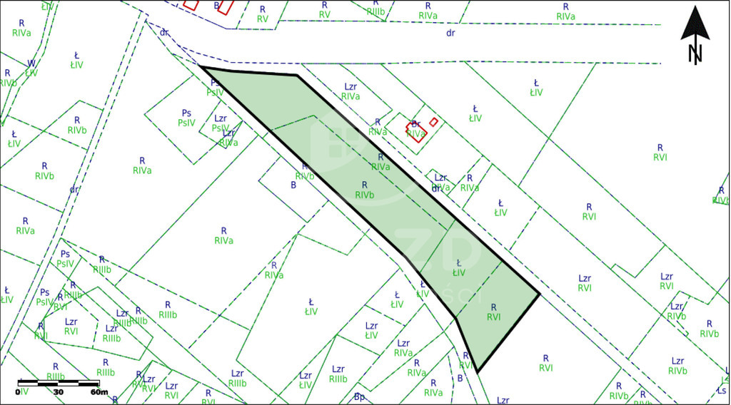• Zasady i warunki podziału terenów na działki budowlane: d) RM = 1 500 m2