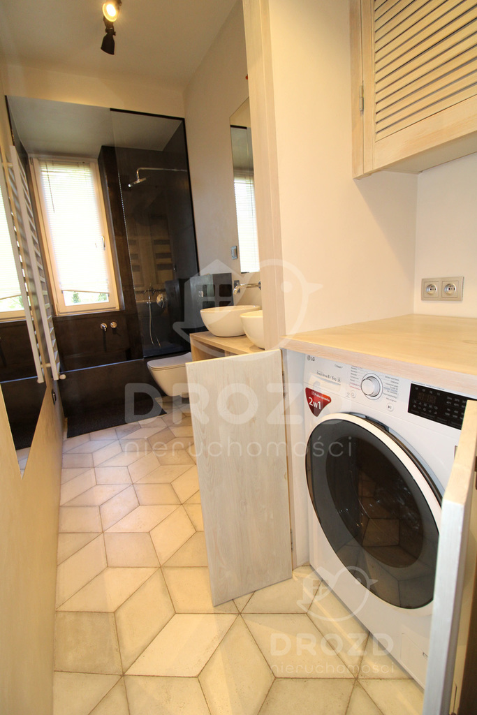 - oddzielna kuchnia z oknem, wyposażona min. w zmywarkę, w łazience jest pralko suszarka