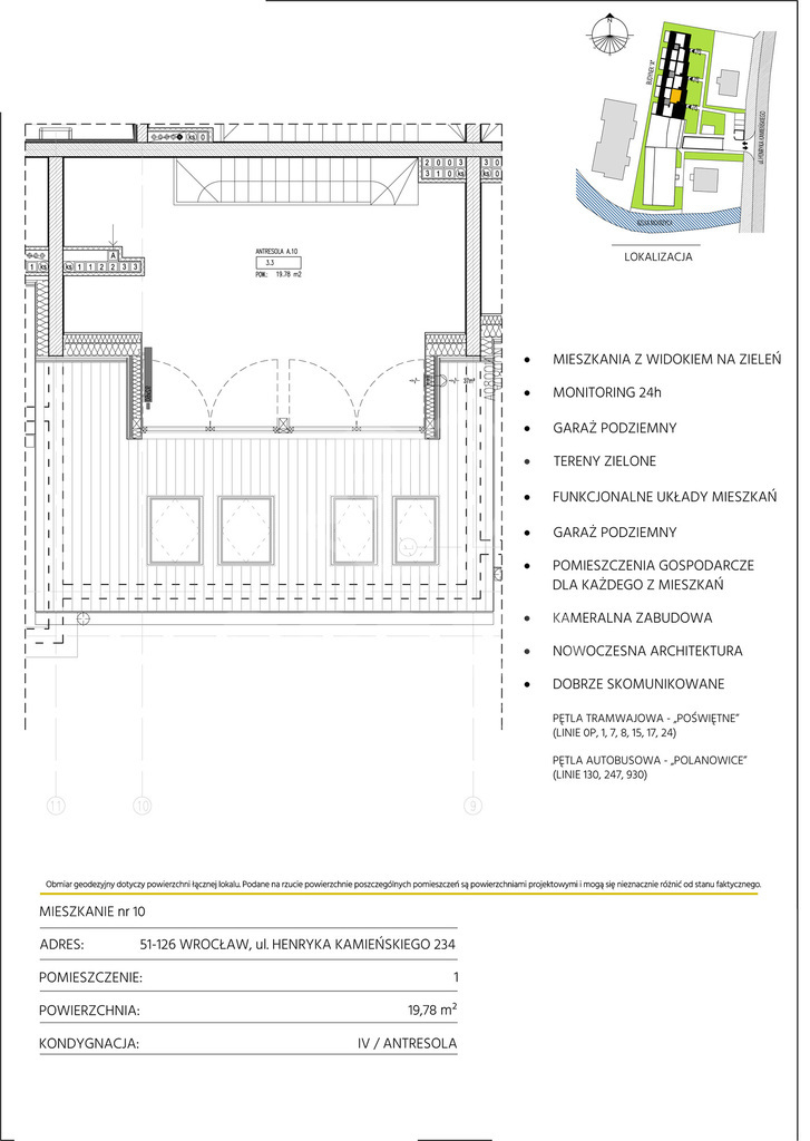 Inwestycja zlokalizowana jest w spokojnej, cichej okolicy, dominuje zabudowa jednorodzinna. Nieopodal znajdują się rozległe tereny zielone. Wzdłuż graniczącej z działką rzeki Mokrzycy zgodnie z planem miejscowym planowana jest ścieżka rowerowa.