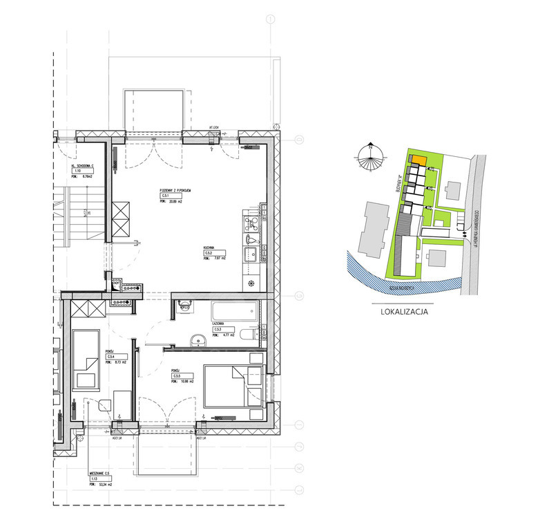- powierzchnia mieszkania 53,34 m2,